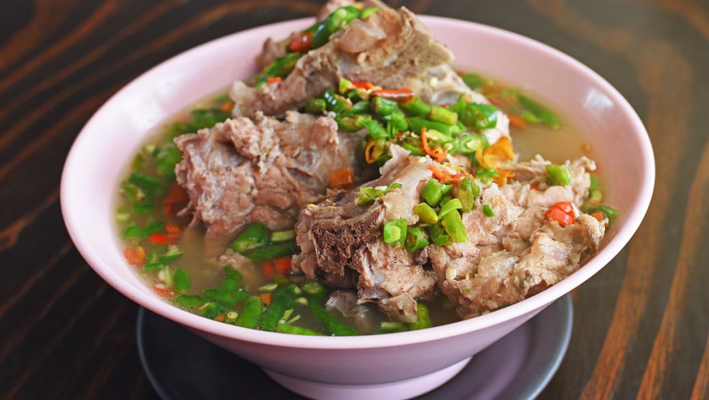 大甸子羊湯主要原料是羊肉,羊血,羊下水,配料是辣椒,香菜,鹽,味精等。將羊肉、羊下水,羊血切片放入羊骨湯中,加入香菜,辣椒等作料煮,鐵嶺特色美食小吃。